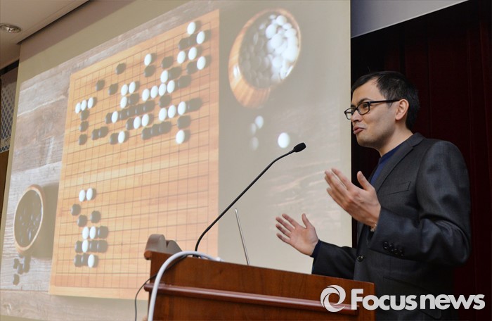(대전=포커스뉴스) 이세돌 9단과 겨루는 인공지능 컴퓨터 알파고를 개발한 구글 딥마인드 최고경영자 데미스 하사비스가 11일 오후 대전 유성구 한국과학기술원(KAIST)에서 '인공지능과 미래' 라는 주제로 강연을 하고 있다.