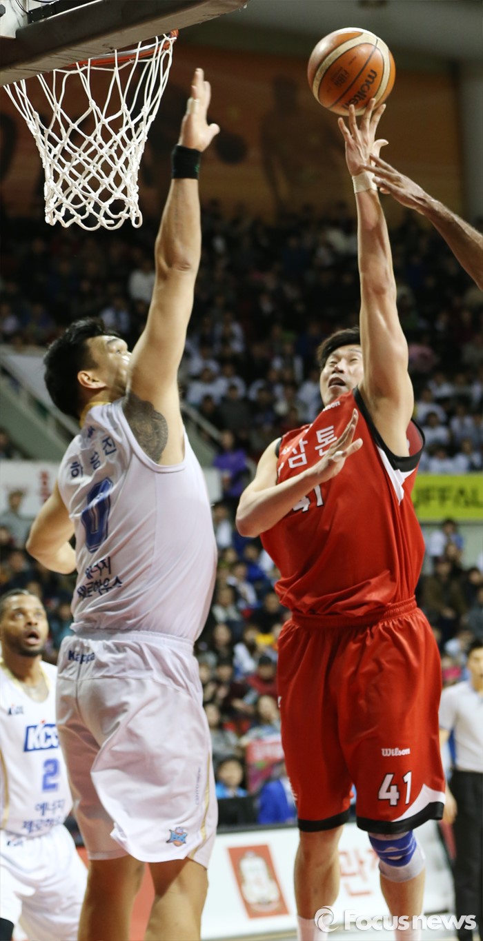 | △ 하승진 앞에서 슈팅하는 오세근 |