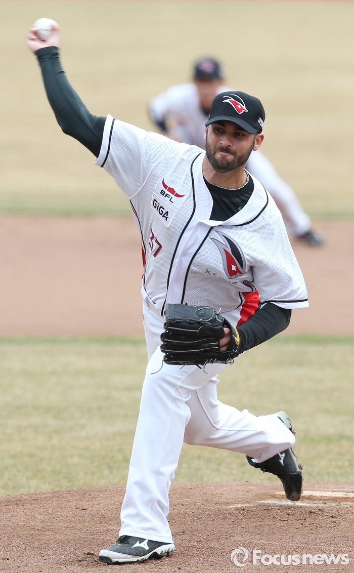 | △ kt 선발 밴와트의 투구 |