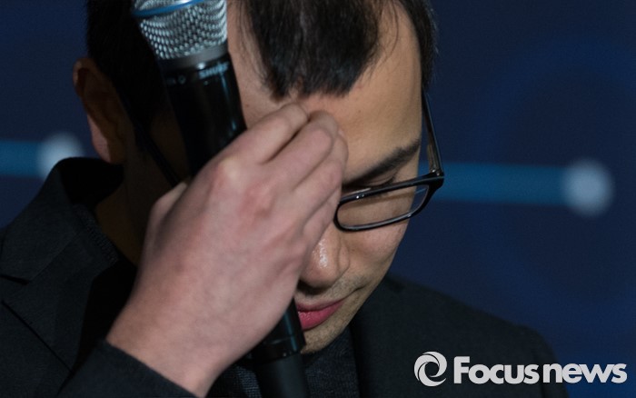 (서울=포커스뉴스) 데미스 하사비스 구글 딥마인드 최고경영자가 13일 오후 서울 종로구 포시즌스호텔에서 열린 구글 딥마인드 챌린지 매치 제4국 기자회견에 참석해 고개를 숙이고 있다.