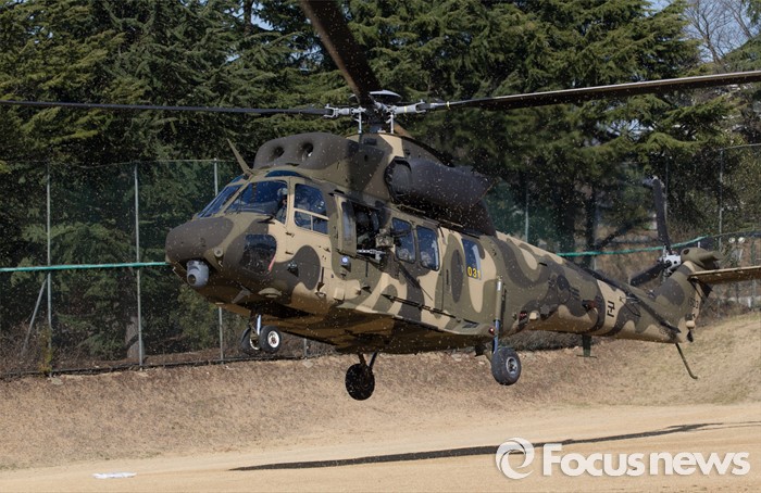 (대구=포커스뉴스) 10일 오후 제2작전사령부 예하부대에서 육군항공·특공부대 전개훈련에 참가한 201특공여단 장병들이 국산 헬기 수리온(KUH-1)을 이용해 작전지역에 침투하고 있다.