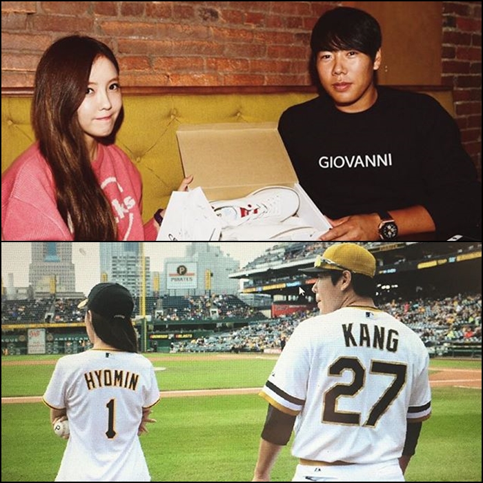 소속사 관계자는 “강정호 선수가 부상당해 있을 때 효민이 위로를 해줬고, 그 후 서로 문자를 자주 주고받는 정도”라고 설명했다. 두 사람은 지난해 8월 효민이 강정호가 속한 피츠버그 파이어리츠 경기 시구자로 나서며 친분을 쌓기 시작한 것으로 알려졌다.