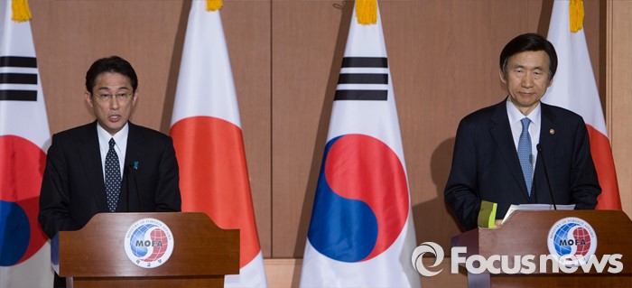 이와 관련해 마이니치는 "북한의 핵 문제 등을 주요 의제로 사전에 조율하기 위한 조기 협의 개최가 필요하다"고 설명했다.윤병세 외교부 장관과 기시다 후미오 일본 외무상이 28일 오후 서울 외교부 청사에서 위안부 문제 해결 방안과 관련한 회담을 마치고 공동기자회견을 하고 있다. 2015.12.28 김흥구 기자