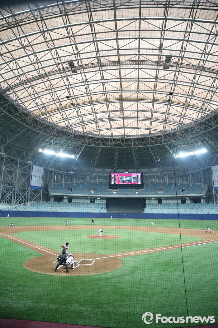 (서울=포커스뉴스) 15일 최초의 돔구장인 서울 고척스카이돔에서 2016 프로야구 시범경기 SK-넥센전이 열리고 있다.