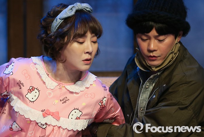 (서울=포커스뉴스) 15일 오후 서울 강남구 코엑스아트센터에서 열린 연극 '서툰사람들' 프레스콜에 참석한 배우 유민정(왼쪽)과 김늘메가 주요 장면을 시연하고 있다.