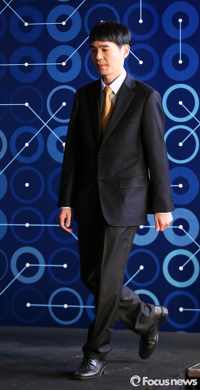 (서울=포커스뉴스) 15일 오후 서울 광화문 포시즌스 호텔에서 열린 구글 딥마인드 챌린지 매치 제5국에서 바둑기사 이세돌 9단이 인공지능 바둑프로그램 알파고에게 패배 후기자회견장으로 발걸음을 옮기고 있다.