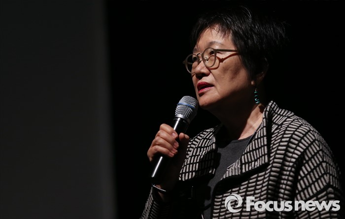 (서울=포커스뉴스) 16일 오후 서울 종로구 미마지아트센터 눈빛극장에서 열린 연극 '두 코리아의 통일' 프레스콜에 참석한 프랑코포니 극단 임혜경 대표가 작품에 대한 소개를 하고 있다.