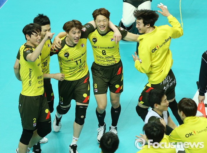 (서울=포커스뉴스) OK저축은행이 천신만고 끝에 현대캐피탈에 승리를 거두며 챔피언결정전 첫 경기를 승리로 장식했다.