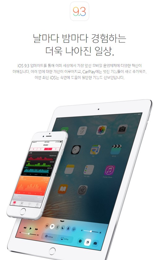 iOS 9.3 업데이트는 이날부터 다운로드 가능하다.iOS 9.3 <사진제공=애플>