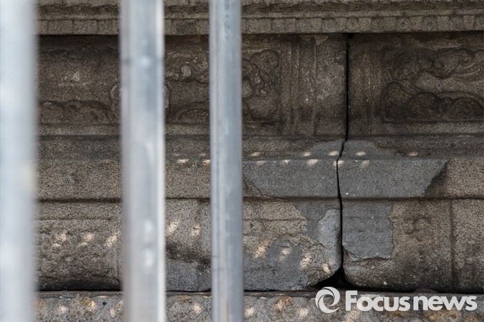 (서울=포커스뉴스) 22일 오후 서울 경복궁 국립고궁박물관 앞뜰에 해체를 앞둔 국보 제101호 법천사지 지광국사탑이 보이고 있다.