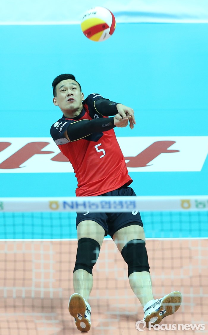 (안산=포커스뉴스) 22일 안산상록수체육관에서 열린 2015-2016 V-리그 남자부 챔피언결정전 3차전 OK저축은행-현대캐피탈 경기에서 현대캐피탈 리베로 여오현이 뒤로 넘어지며 리시브를 하고 있다.