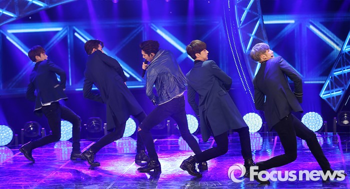 (서울=포커스뉴스) 22일 오후 서울 마포구 SBS프리즘 타워에서 열린 2016 '더쇼' 생방송에 참여한 보이그룹 크나큰이' Knock'의 무대를 선보이고 있다.