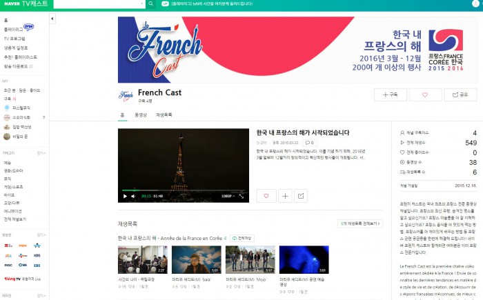 네이버는 '한불 상호 교류의 해'를 맞아 주한프랑스대사관과 함께 프렌치캐스트를 오픈한다고 23일 밝혔다. 프렌치캐스트에서는 네이버 동영상 채널인 네이버TV캐스트를 통해 프랑스의 문화, 역사, 예술, 교육, 관광 등 다양한 분야를 살펴볼 수 있다.