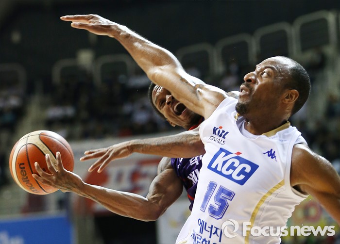 (고양=포커스뉴스) 23일 고양체육관에서 열린 2015-2016 프로농구 챔피언결정전 3차전 오리온-KCC경기에서 오리온 조 잭슨이 드라이브인 슈팅을 시도하다 KCC 허버트 힐의 마크에 걸려 넘어지고 있다.