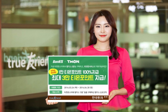 이번 이벤트는 소셜커머스 업체 티켓몬스터에서 '뱅키스 0원 딜'을 구매한 후, 비대면 서비스로 뱅키스 주식계좌를 신규 개설하면 1만 티몬포인트와 주식거래 수수료 5년 무료 혜택을 제공한다.