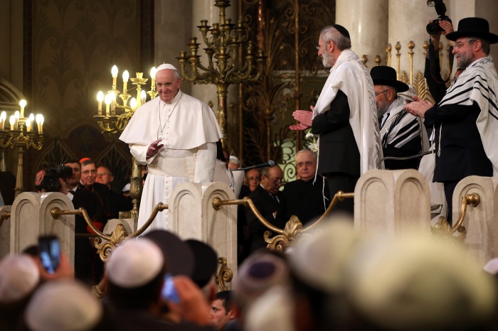 본래 가톨릭 규정을 어겨온 셈이었던 교황은 지난 1월 여성과 소녀들도 세족례에 참여할 수 있도록 가톨릭 규정을 바꿨다.2016년 1월 17일 프란치스코 교황이 로마 유대교 회당을 방문했다. 2016.03.25 ⓒ게티이미지/이매진스