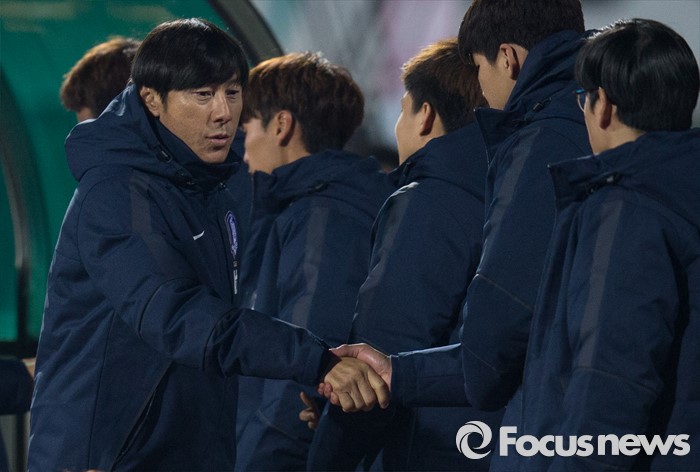(이천=포커스뉴스) 25일 오후 경기 이천종합운동장에서 열린 KEB하나은행 초청 올림픽대표 대한민국과 알제리의 친선경기를 2-0으로 승리, 신태용 감독이 코치진과 악수를 하고 있다.