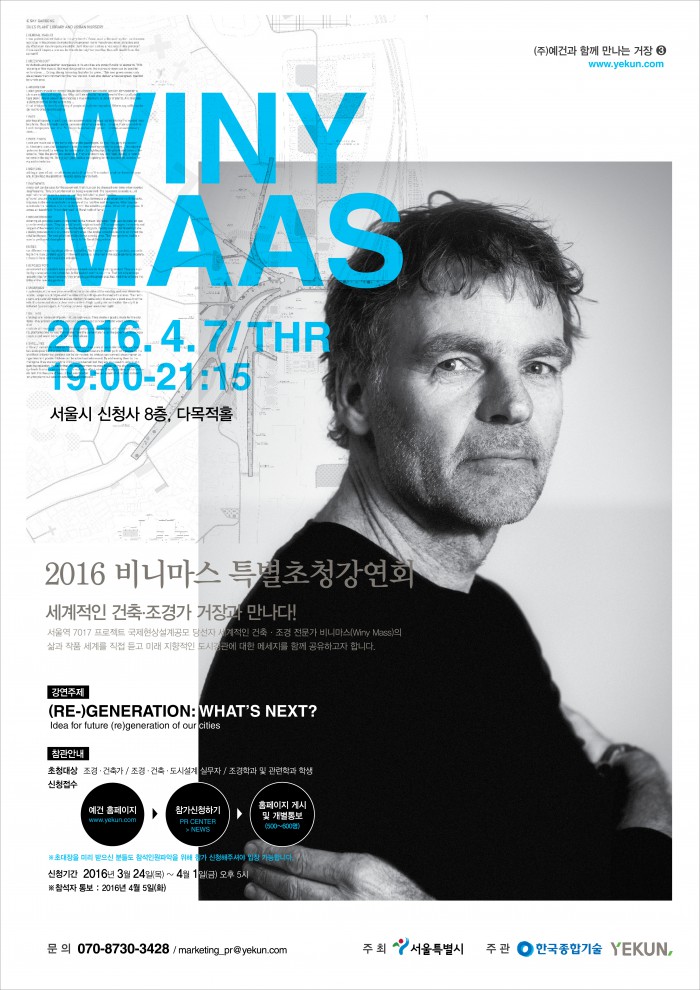 (서울=포커스뉴스) 서울시는 '서울역 7017 프로젝트' 국제현상설계공모 당선자 비니마스(Winy Maas)의 초청강연회를 다음달 7일 서울시청에서 개최한다고 27일 밝혔다.