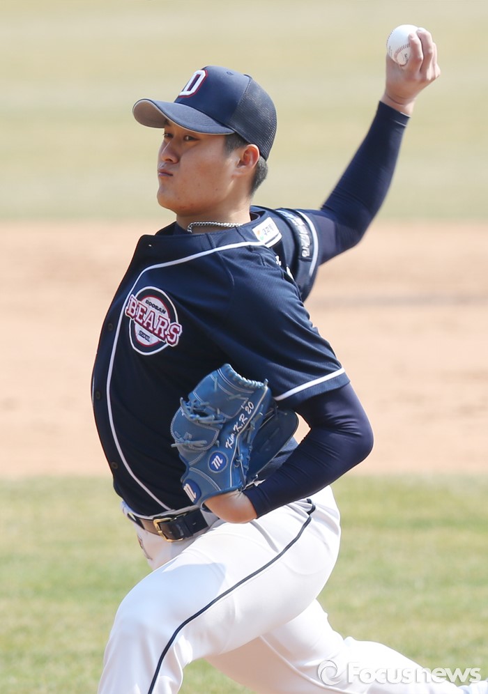 (서울=포커스뉴스) 27일 서울 잠실구장에서 열린 2016프로야구 시범경기 두산-LG 경기에서 8회말 두산 투수 김강률이 투구하고 있다.