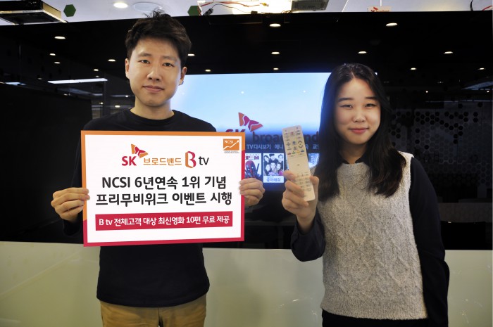 (서울=포커스뉴스) SK브로드밴드는 Btv 고객에게 최근 인기영화를 무료로 시청할 수 있는 ‘Btv 프리무비위크(Free Movie Week)’ 이벤트를 28일부터 시행한다. 이번 행사는 SK브로드밴드가 국가고객만족도(NCSI) 조사에서 초고속인터넷과 IPTV(인터넷tv)부문에서 6년 연속 1위를 수상한 기념으로 진행된다.