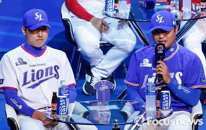 (서울=포커스뉴스) 28일 오후 서울 용산구 브루스퀘어 삼성카드홀에서 열린 '2016 타이어뱅크 프로야구 미디어데이 & 팬페스트' 행사에 참석한 삼성 라이온즈 박한이 선수가 새 시즌에 임하는 각오를 밝히고 있다.