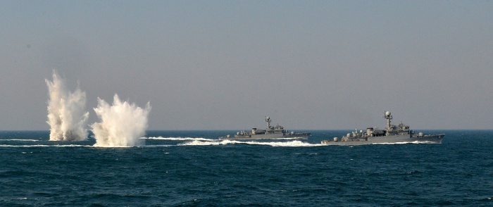| △ 폭뢰투하 훈련하는 해군함정들 |