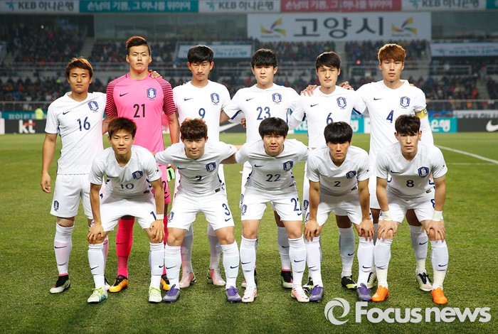 (고양=포커스뉴스) 28일 오후 경기 고양종합운동장에서 열린 올림픽축구대표팀 2차 평가전 대한민국과 알제리의 경기에서 한국대표팀이 기념촬영을 하고 있다.