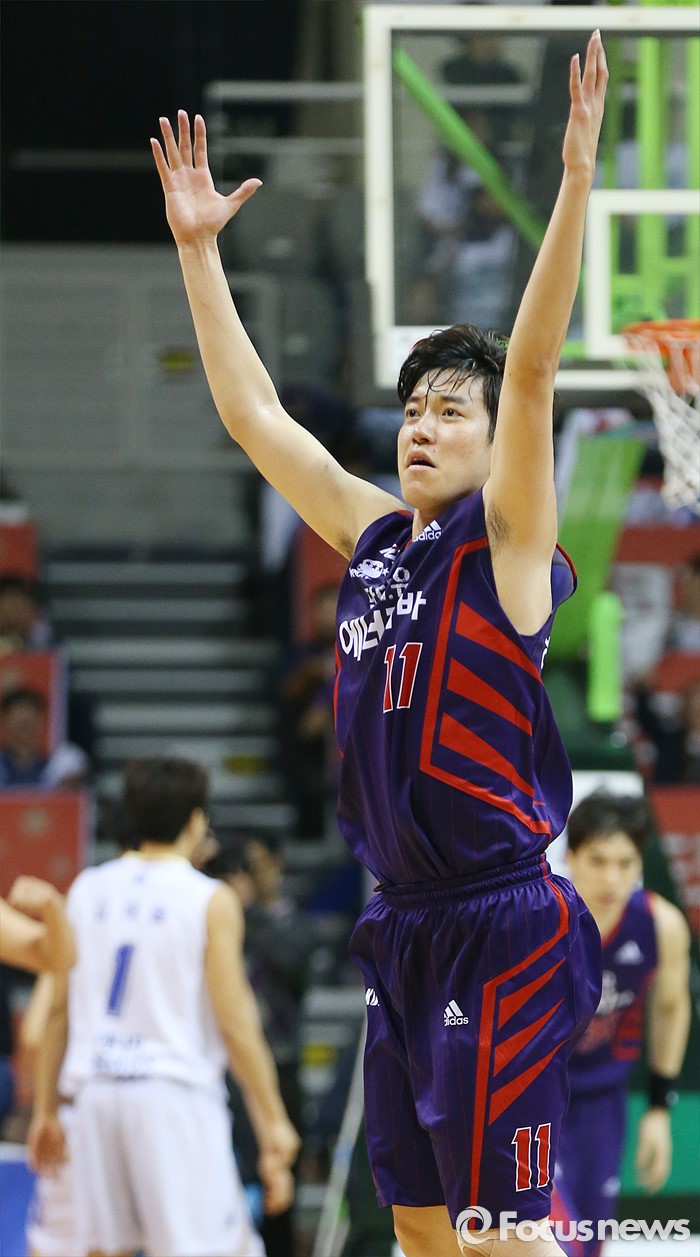 (고양=포커스뉴스) 29일 고양체육관에서 열린 2015-2016 프로농구 챔피언결정전 6차전 오리온-KCC 경기에서 오리온 허일영이 3점슛을 성공시킨후 관중들의 환호에 두손을 들어 답하고 있다.