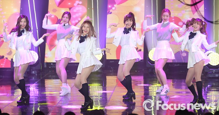 (서울=포커스뉴스) 29일 오후 서울 마포구 SBS프리즘 타워에서 열린 2016 '더쇼' 생방송에 참여한 걸그룹 블루미의 멤버들이 '너 때문이야' 의 무대를 선보이고 있다.