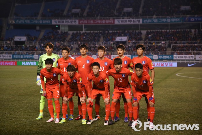 | △ 대 레바논전 앞서 촬영하는 국가대표팀 |