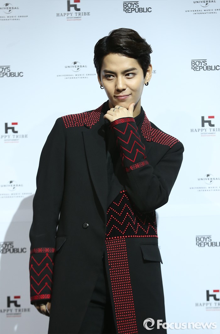 (서울=포커스뉴스) 30일 오후 서울 마포구 예스24 무브홀에서 열린 아이돌그룹 소년공화국의 세번째 미니앨범 [BR: evolution] 발표 쇼케이스에 참석한 멤버 수웅이 포토타임을 갖고 있다.
