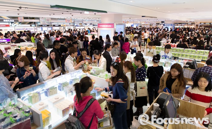 (서울=포커스뉴스) 31일 오후 서울 용산구 신라아이파크면세점을 찾은 중국 아오란 그룹 임직원들이 쇼핑을 하고 있다.