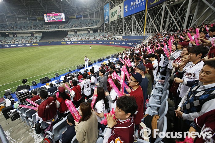 (서울=포커스뉴스) 1일 오후 서울 구로구 고척스카이돔에서 열린 2016 타이어뱅크 프로야구 개막전 넥센 히어로즈와 롯데 자이언츠의 경기에서 관중들이 응원을 펼치고 있다.'반가운 야구장 기다렸다'