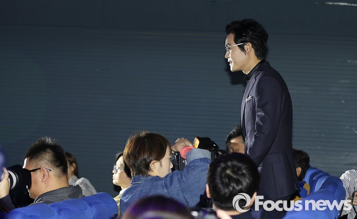 (서울=포커스뉴스) 4일 오전 서울 강남구 압구정 CGV에서 열린 영화 '탐정 홍길동 : 사라진 마을' 제작보고회에 배우 김성균이 참석하고 있다.