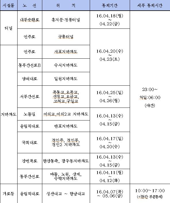 교통통제에 대한 자세한 내용은 서울시설공단 홒페이지(www.sisul.or.kr)를 통해 알 수 있다.<표제공=서울시청>