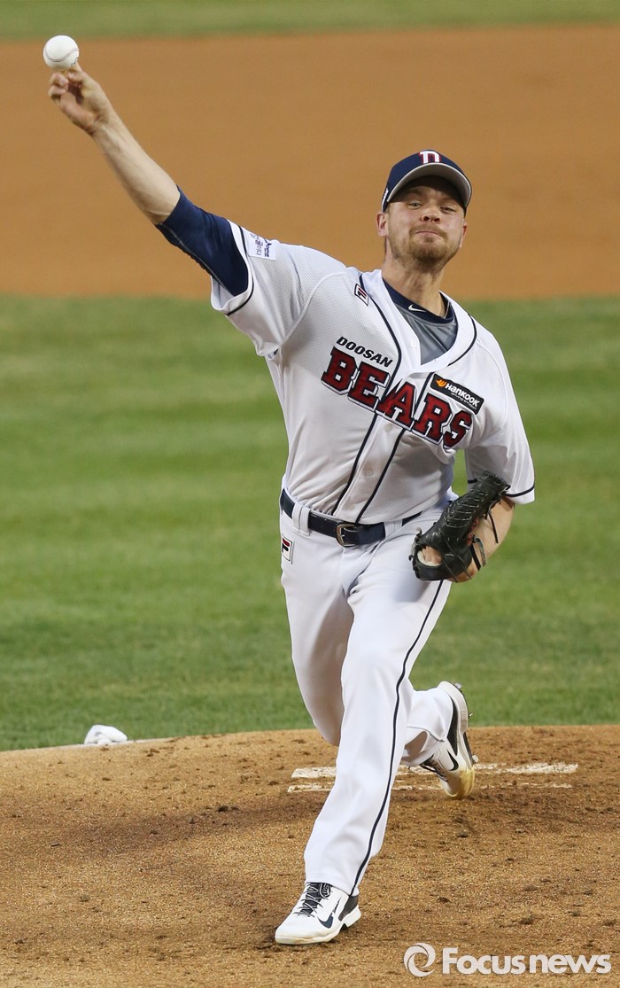 (서울=포커스뉴스) 6일 서울 잠실구장에서 열린 2016 프로야구 NC-두산 경기에서 1회초 두산 선발투수 보우덴이 투구하고 있다.