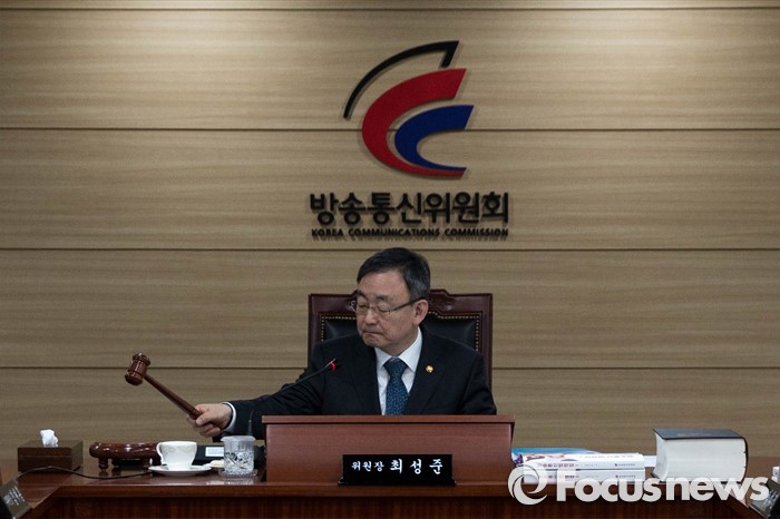 한편 이번 SK텔레콤과 CJ헬로비전의 인수합병은 미래부가 공정위의 심사를 토대로 심사를 진행한 후 방통위의 사전동의를 얻어 최종 인가 결정을 내린다.(과천=포커스뉴스) 4일 오전 경기도 과천시 정부과천종합청사에서 최성준 방송통신위원장이 전체회의에 참석, 의사봉을 두드리고 있다. 2016.02.04 성동훈 기자