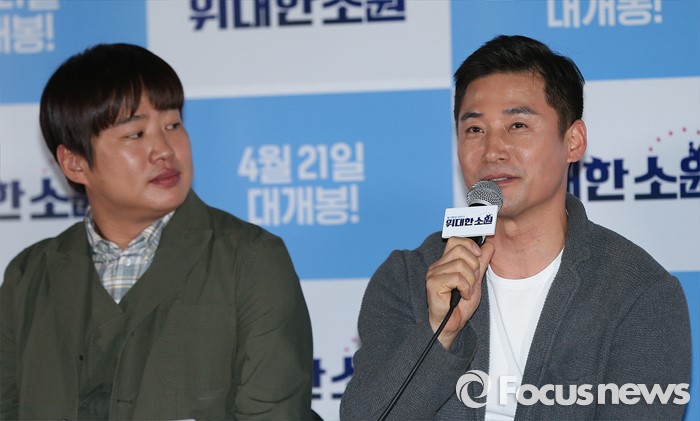 (서울=포커스뉴스) 7일 오후 서울 광진구 건대입구 롯데시네마에서 열린 영화 '위대한 소원' 언론시사회에 참석한 배우 전노민이 인사말을 하고 있다.