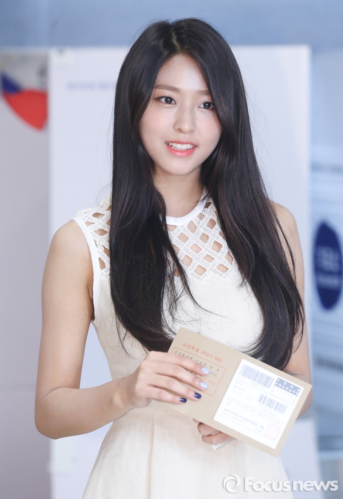 (서울=포커스뉴스) 20대 총선을 닷새 앞두고 사전투표가 이틀동안 실시되는 8일 오후 서울 강남구 청담동주민센터에 마련된 사전투표소에서 총선 홍보대사인 그룹 AOA의 설현이 투표를 하고 있다.