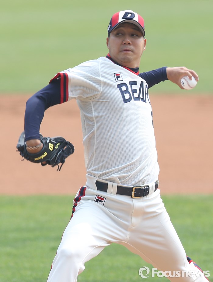 (서울=포커스뉴스) 10일 서울 잠실구장에서 열린 2016 프로야구 넥센-두산 경기에서 1회초 두산 선발투수 장원준이 투구하고 있다.