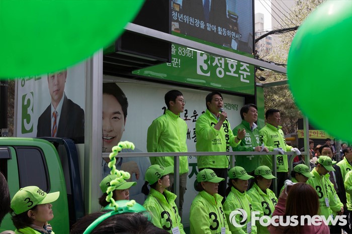 (서울=포커스뉴스) 20대 총선을 3일 앞둔 10일 오후 서울 성동구 옥수역 인근에서 안철수 국민의당 공동대표가 정호준 국민의당 중구성동을 후보 지원유세를 하고 있다.