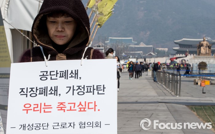 이어 "정부는 앞으로도 근로자의 실직을 최소화하고 생활안정을 보호하기 위해 필요한 조치들을 지속적으로 강구해 나갈 것"이라고 덧붙였다.정부는 11일 개성공단 주재원 휴업 휴직수당 중 기업이 부담하는 부분에 대한 남북협력기금 지원이 집행된다고 밝혔다. 사진은 3월 21일 오전 서울 광화문 광장에서 개성공단 폐쇄에 따른 정부의 보상을 촉구하는 팻말을 몸에 두르고 있는 개성공단 근로자 협의회 소속 근로자. 2016.03.21 양지웅 기자