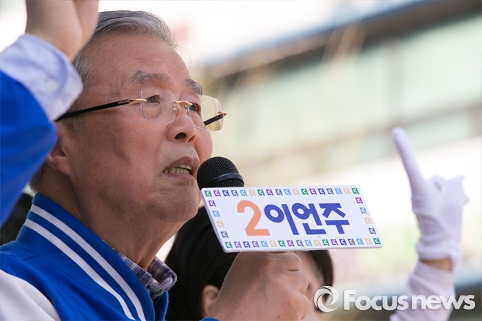 (광명=포커스뉴스) 20대 총선을 이틀 앞둔 11일 오후 경기도 광명 하안사거리에서 김종인 더불어민주당 비대위 대표 겸 선대위원장이 이언주 광명을 후보의 지지를 호소하고 있다.