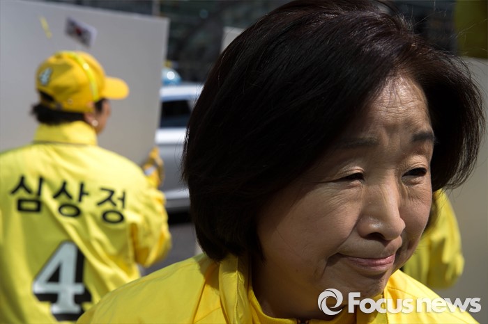 (고양=포커스뉴스) 11일 오후 경기도 고양시 덕양구 세이브존 쇼핑몰 앞에서 심상정 정의당 후보가 시민들을 향해 한 표를 호소하고 있다.