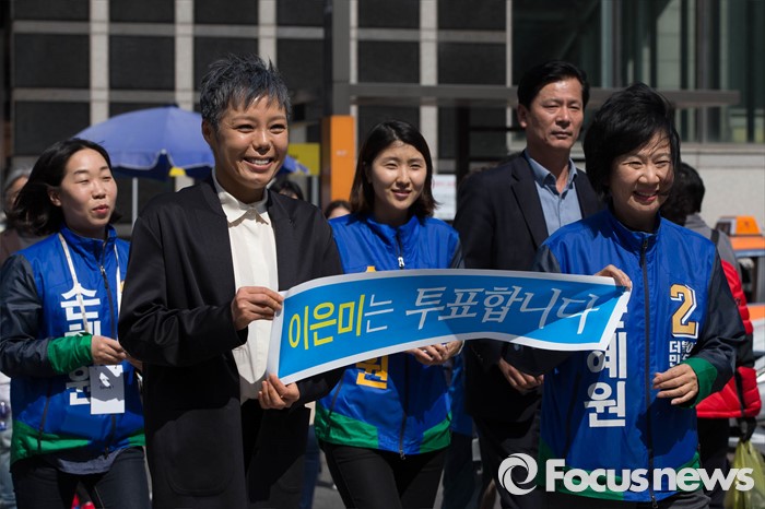 △ 손혜원 후보 지원유세 나선 가수 이은미