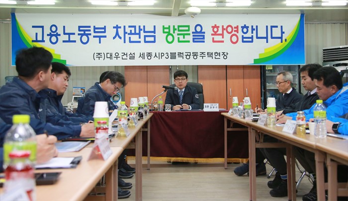 (세종=포커스뉴스) 고영선 고용노동부 차관이 11일 오후 세종시 아파트건설현장을 방문, 건설 근로자들의 안전관리실태를 점검, 건설현장 관계자들로부터 애로사항을 청취하고 있다. <사진제공=고용노동부>