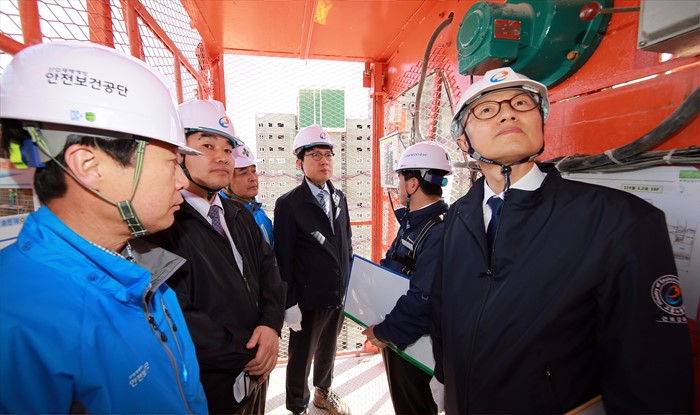 (세종=포커스뉴스) 고영선 고용노동부 차관이 11일 오후 세종시 아파트건설현장을 방문, 건설 근로자들의 안전관리실태를 점검, 건설현장 관계자들로부터 애로사항을 청취하고 있다. <사진제공=고용노동부>