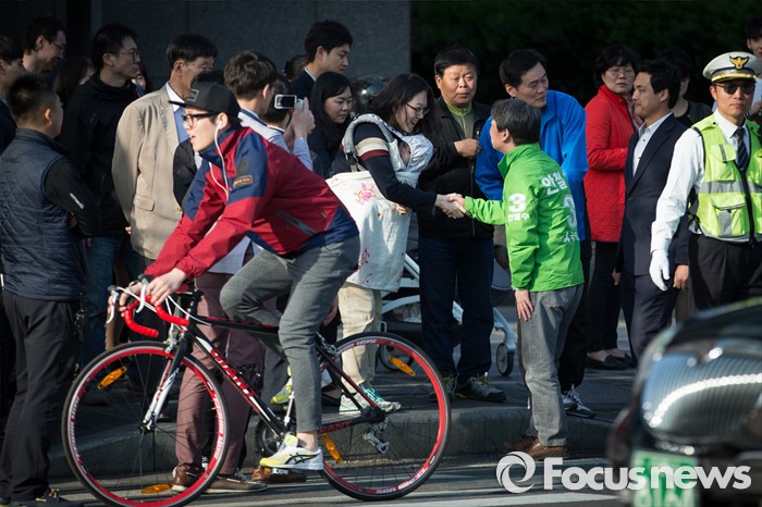 유권자들과 인사하는 안철수