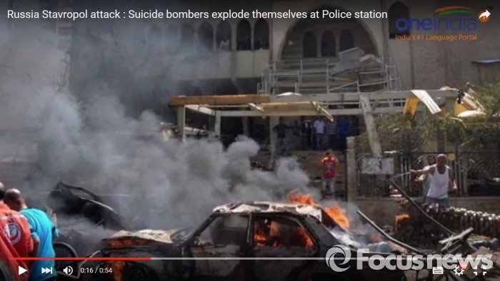 현장에 있던 목격자는 최소 5차례 폭음과 총격 소리를 들었다고 증언했다. 러시아 연방 보안국은 향후 발생할 수 있는 테러를 미연에 방지하려고 스타브로폴 지역의 테러 경계 수준을 강화했다.11일 오전 러시아에서 자살폭탄 테러가 발생했다. 다행히 민간인·경찰 사상자는 전혀 발생하지 않았다. <사진출처=원인디아뉴스유튜브>