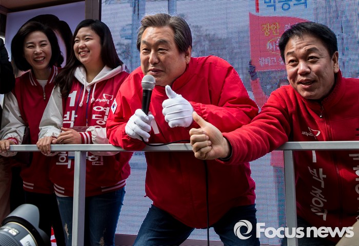 (수원=포커스뉴스) 4.13 총선을 하루 앞둔 12일 오전 경기 수원 정자시장에서 박종희 새누리당 수원시갑 후보 지원유세에 나선 김무성 대표가 유권자들에게 박 후보의 지지를 호소하고 있다.